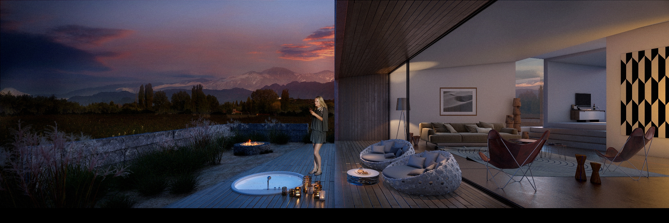 Bienvenidos a una tierra llena de sol y buenos vinos. Entre Cielos está ubicado en la hermosa región de Mendoza, a los pies de los Andes. El moderno diseño del hotel crea un entorno elegante y poético, respetuosamente integrado en el imponente paisaje argentino, donde puede estar seguro de recibir una cálida y amistosa bienvenida.